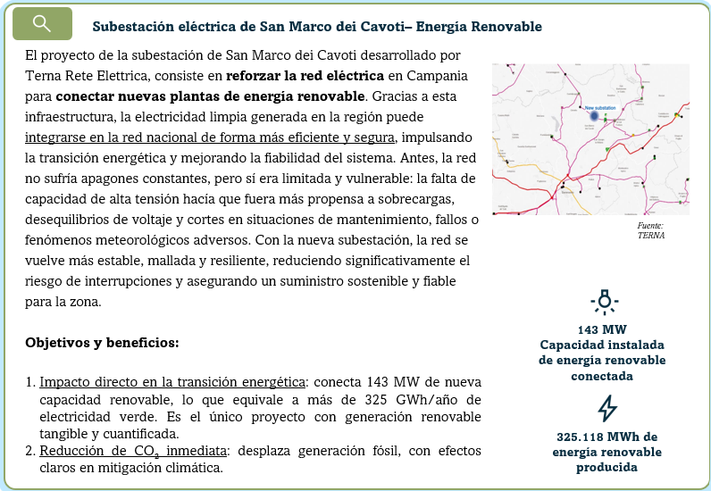 Ejemplo de un proyecto financiado a través de la inversión en un bono verde de Terna, compañía italiana de desarrollo de redes eléctricas